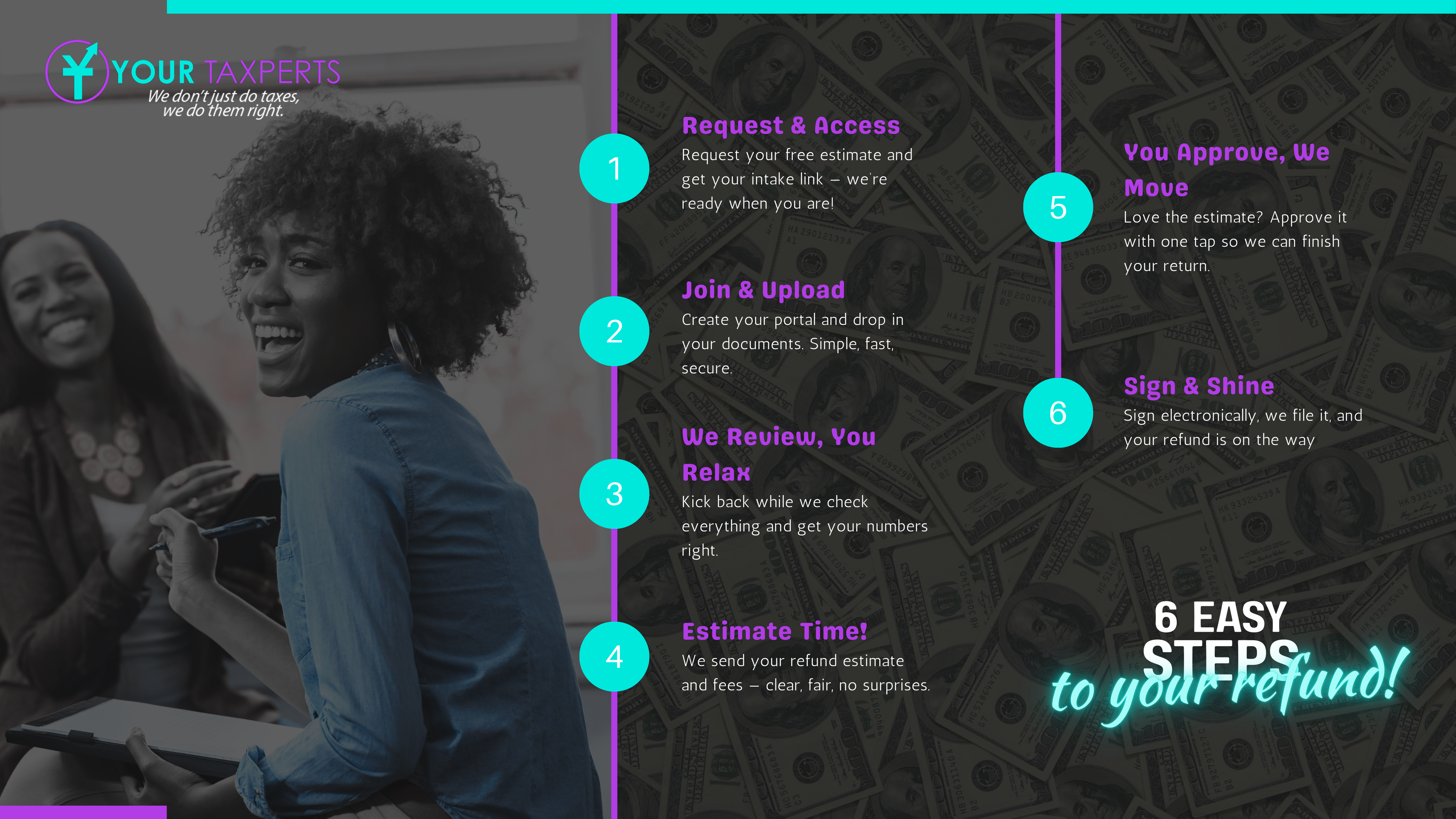 As entrepreneurs with over 13 years of experience, we understand the unique challenges small business owners face. We don’t just handle your taxes—we offer personalized tax planning to help minimize your tax burden and maximize your growth.